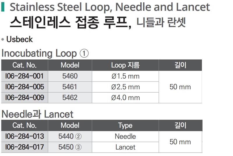 스테인레스 접종 루프, 니들과 란셋 Stainless Steel Loop I06-284-001