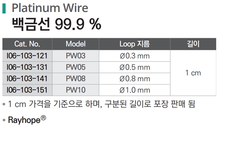품명 ■ 1 cm 가격을 기준으로 하며, 구분된 길이로 포장 판매 됨 ■ Rayhope®