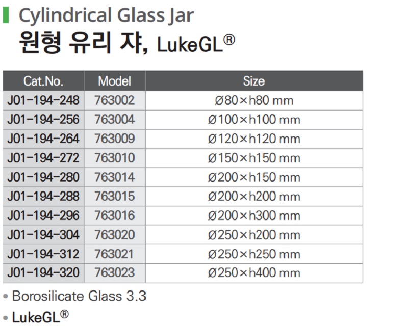품명 ■ Borosilicate Glass 3.3 ■ LukeGL®