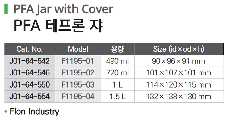 PFA 테프론 쟈 PFA Jar with Cover J01-64-542