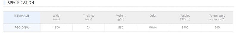 히팅 자켓 PG040SSW 시트 두께 0.4T 폭 1500mm
