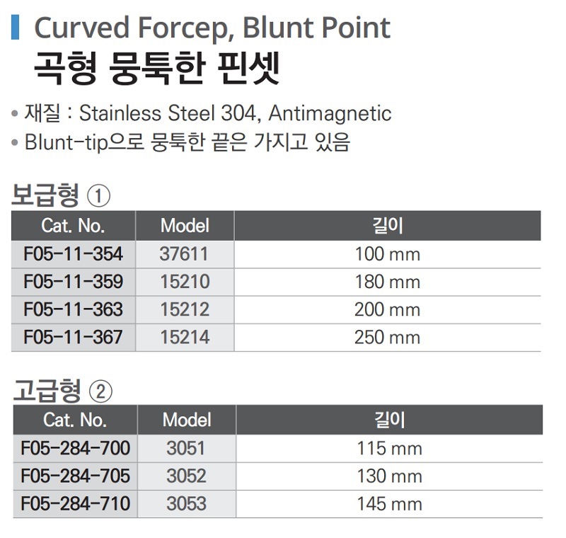 곡형 뭉툭한 핀셋 Curved Forcep, Blunt Point F05-11-354