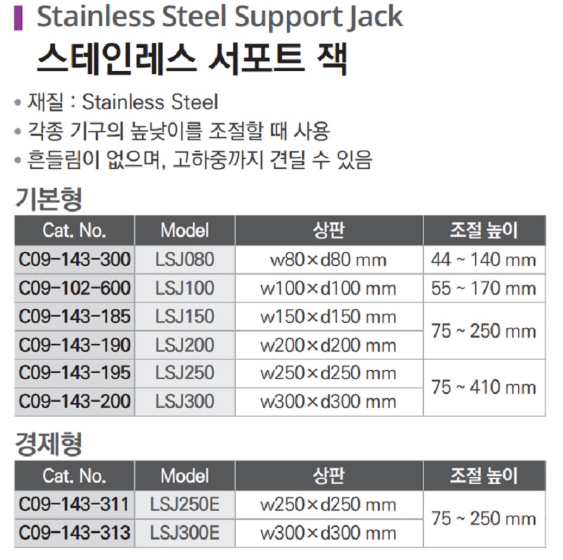 스테인레스 서포트 잭 Stainless Steel Support Jack C09-143-300