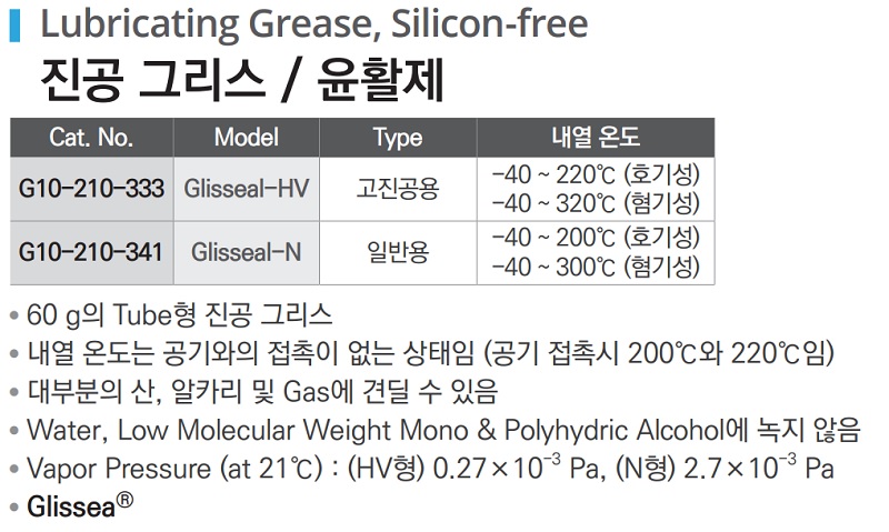 진공 그리스 / 윤활제 Lubricating Grease, Silicon-free