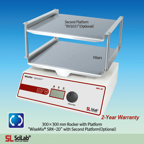 SciLab® Programmable Digital Rockers “WiseMix® SRK”, Digital Feedback Control, 5~50 rpm, with Certi. & Traceability with 290×200mm or 300×300mm Platform, Smooth Start & Wave Motion, Tilt Angle ±6˚/±9˚ 디지털 락커, 디지털 피드백 컨트롤 시스템, 부드러운 시동 동작 및 속도