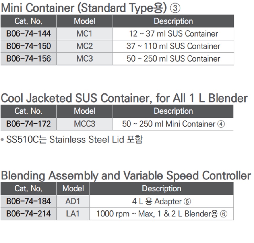 B06-74-214LA11000 rpm ~ Max, 1 & 2 L Blender용 ⑥