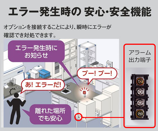 • 타이머(4종), 프로그램 운전(16스텝 8패턴)을 표준 장비.온도 로깅(Bluetooth 통신) 외에 에러시 AC100V 1A 출력 탑재.