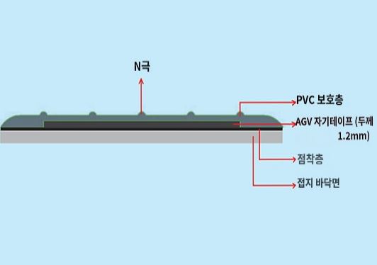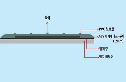 ● 자기 테이프 + 보호층으로 높은 내마모성을 실현하여 AGV(Automated Guided Vehicle)의 테이프 마보에 의한 반복적 재부착 작업을 해결하였습니다.