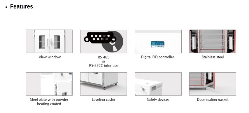 강력한 공기 순환 팬과 PID 디지털 컨트롤러를 탑재하여 내부 온도 분포가 균일하며,