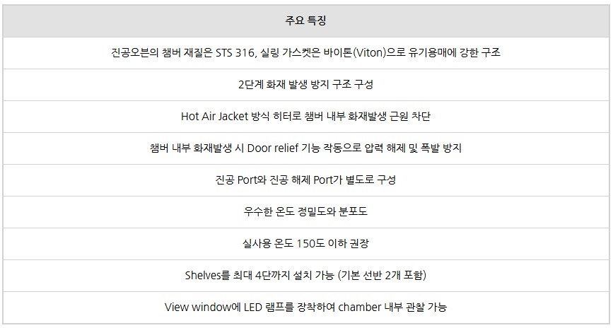 Hot Air Jacket 방식의 히터는 챔버 내부 직접 가열을 방지하고, 압력해제용 Door relief 시스템으로 폭발 위험을 최소화합니다.