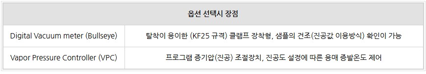 진공 게이지와 증기압 컨트롤러는 옵션으로 구성 가능하며,