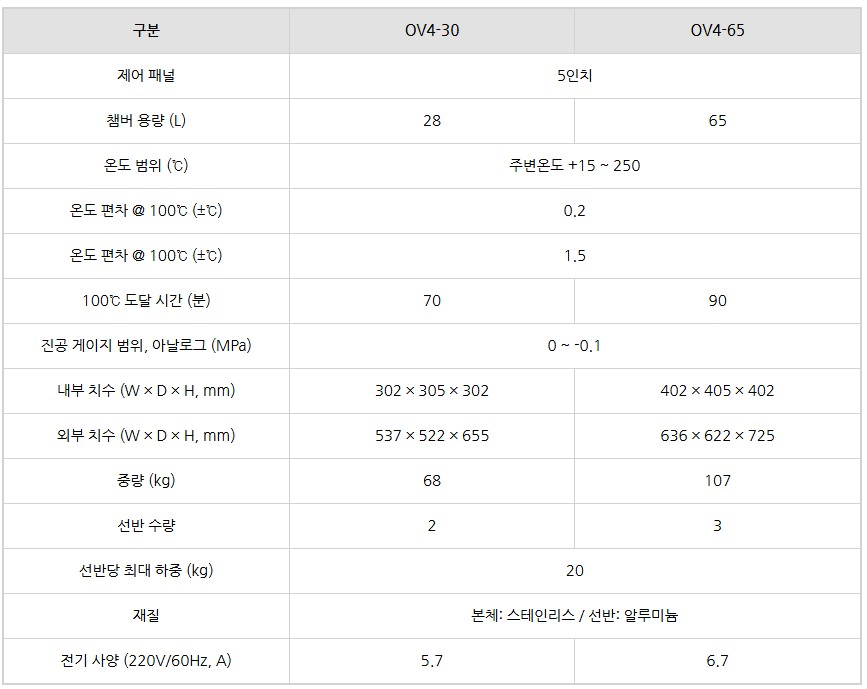 품명 최대 250도 고온 대응 가능한 진공 건조기 OV4 시리즈 정밀 제어 및 안전성 강화된 실험실용 스마트 건조 솔루션