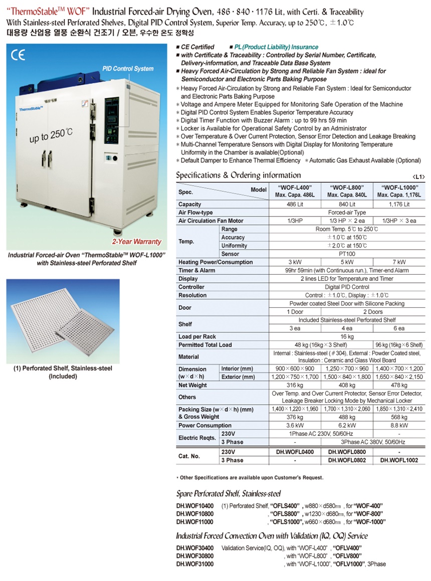 “ThermoStable TM WOF” Industrial Forced-air Drying Oven, 486 · 840 · 11 76 Lit, with Certi. & TraceabilityWith Stainless-steel Perforated Shelves, Digital PID Control System, Superior Temp. Accuracy, up to 250℃, ±1.0℃대용량 산업용 열풍 순환식 건조기 / 오븐, 우수한 온도 정확성