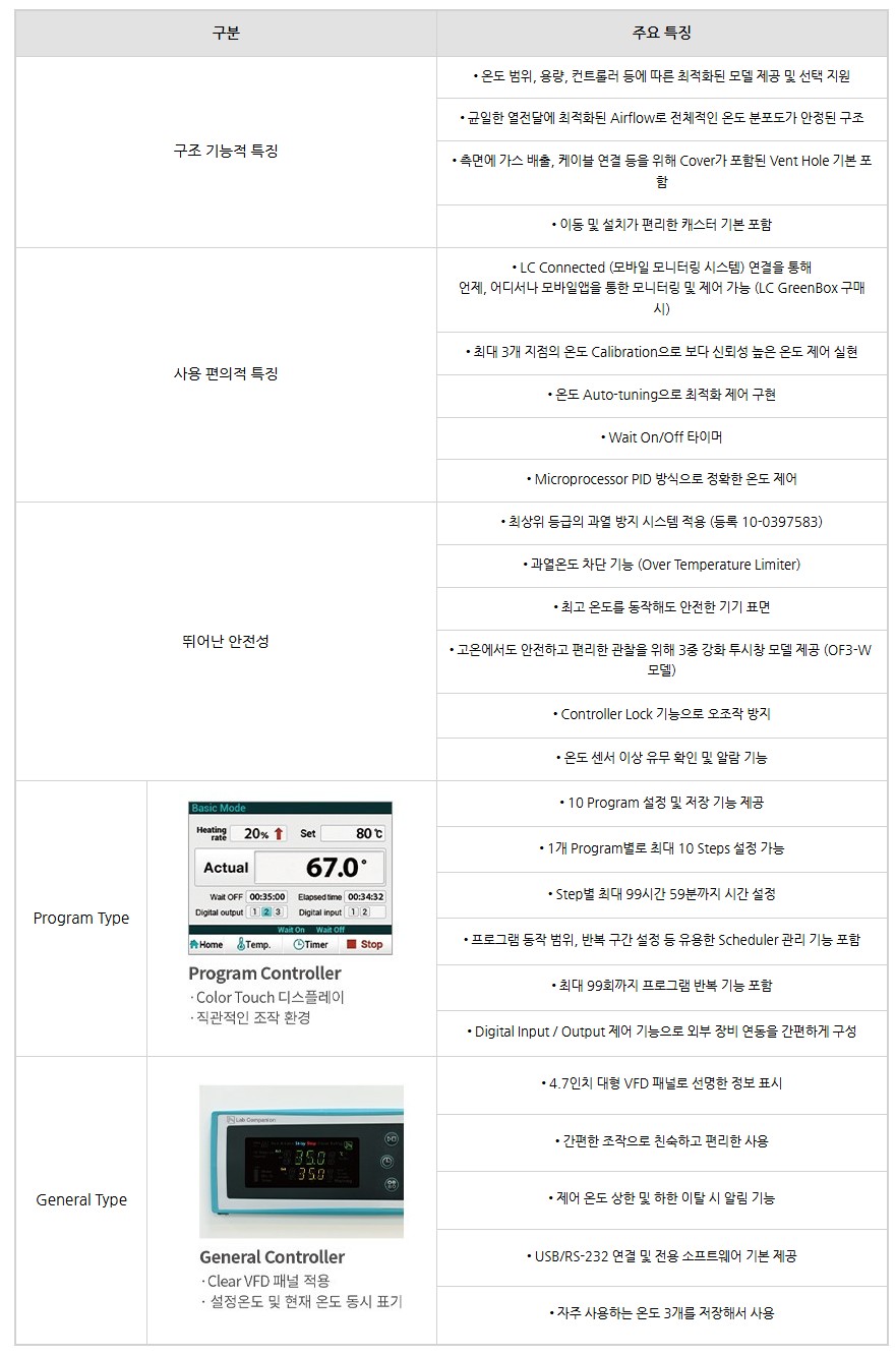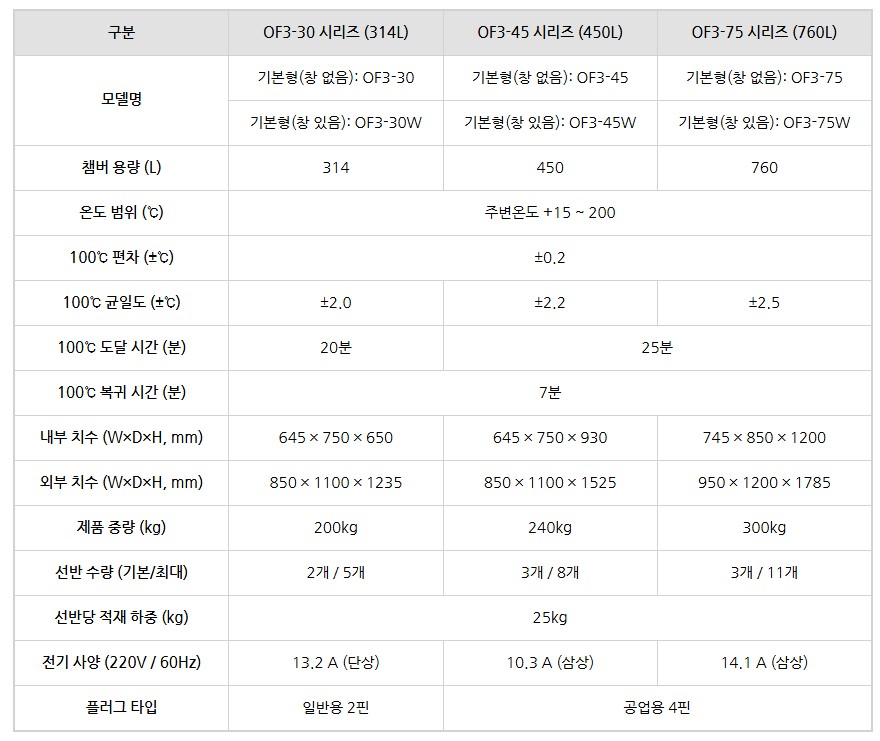 품명 최대 200℃ 고온까지 정밀 제어 가능한 다기능 건조기 (OF3 시리즈)