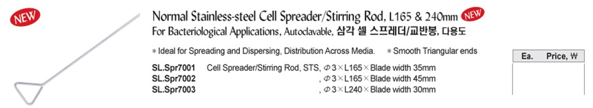 Normal Stainless-steel Cell Spreader/Stirring Rod, L165 & 240mmFor Bacteriological Applications, Autoclavable, 삼각 셀 스프레더/교반봉, 다용도