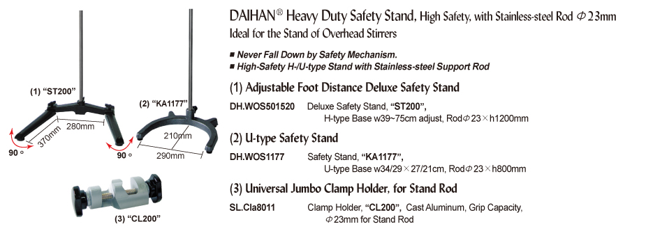 DAIHAN® Heavy Duty Safety Stand, High Safety, with Stainless-steel Rod Φ23mmIdeal for the Stand of Overhead Stirrers