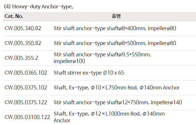 품명 ■ PTFE 교반봉/임펠러 (앵커형)