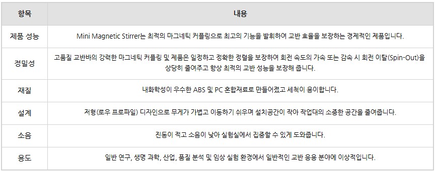 최적의 마그네틱 커플링을 적용하여 교반 효율을 높인 미니 마그네틱 스터러는