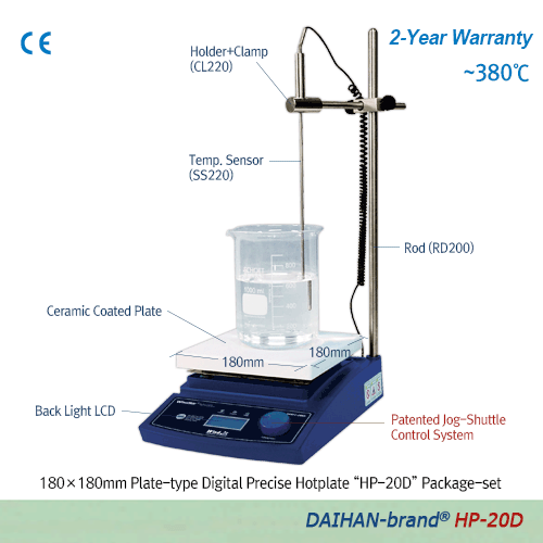 DAIHAN® 380℃ Standard Analog & Digital Hotplate “HP-A” & “HP-D” , Ceramic-Coated PlateWith High Temp Uniformity, 180×180- or 260×260-mm Plate, CE Certified, with Certi. & Traceability아날로그 & 디지털 정밀 가열판, 우수한 온도균일성 & 경제성, 세라믹 코팅 플레이트