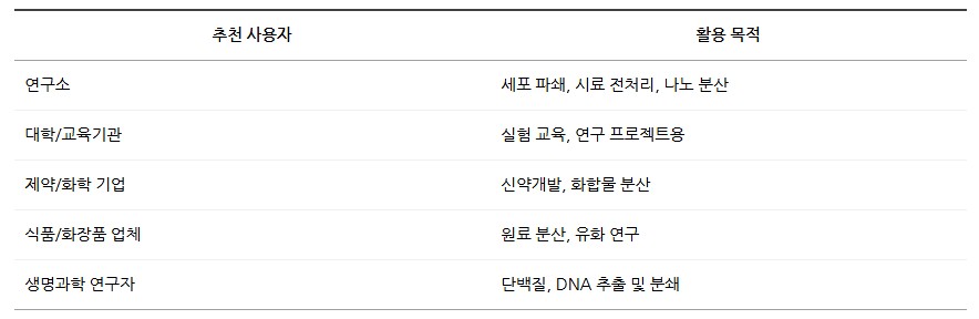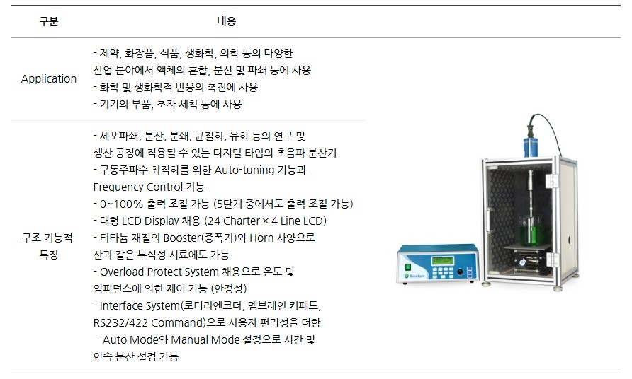 화학 및 생화학 반응 촉진, 시료 전처리, 나노분산 등의 다양한 응용이 가능합니다.