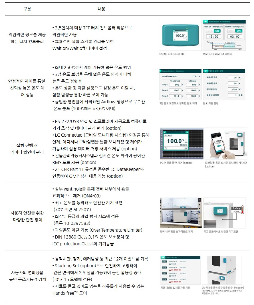또한 3점 온도 보정 기능, RS232/USB 연결, 모바일 원격 모니터링(option) 등을 통해 연구 데이터 관리와 GMP 감사 대응이 용이합니다.