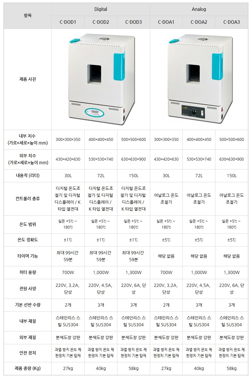 디지털/아날로그 온도제어 실험실 자연대류형 오븐 일반건조기 C-DO 시리즈