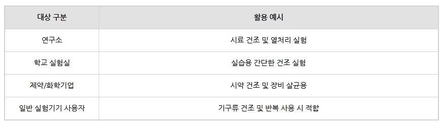 실험실, 연구소, 학교 등에서 다양한 시료나 기구의 건조 및 열처리에 가장 널리 사용되는 자연대류형 건조기입니다.