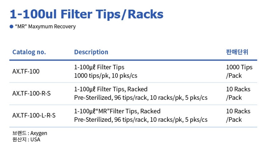 1-100ul 필터 팁 / 랙 AX.TF-100