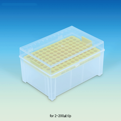 PP Empty Micro Tip Rack/Box, with 96-Wells & Transparent Lid, for 0.2㎕~1,000㎕ TipsMade of High-quality Polypropylene(PP), Stackable, Autoclavable at 121℃, PP 팁용 공박스