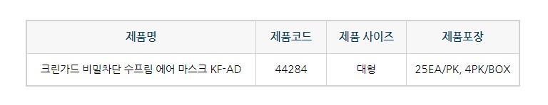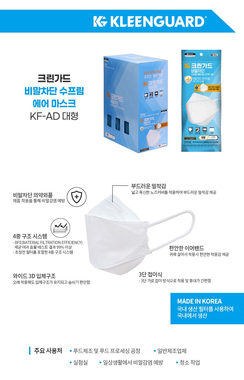 비말차단 수프림 에어 마스크 KF-AD 대형 국내산 일회용 마스크 44284