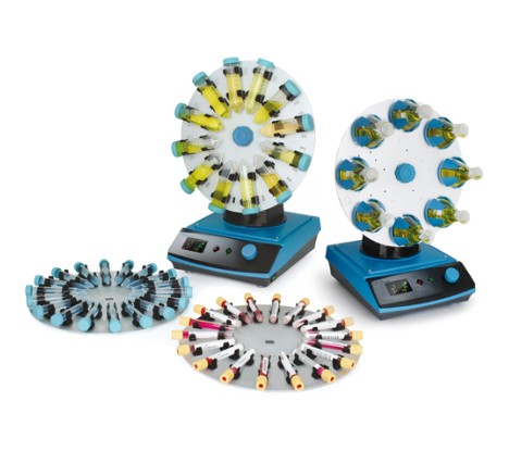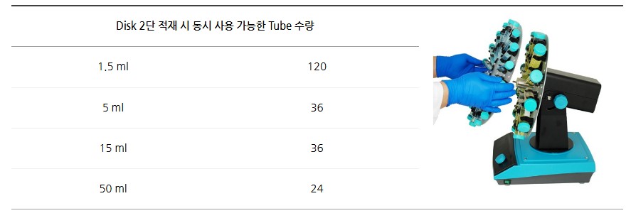 CRT-350 Rotator는 디스크형 2단 적재가 가능하여 다양한 튜브 크기를 동시에 장착할 수 있는 실험실용 장비입니다.