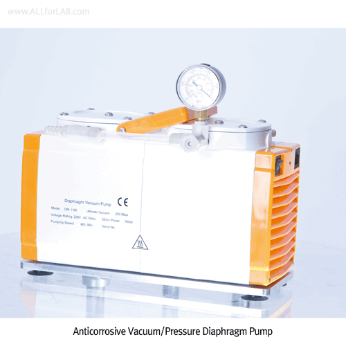 TJV® Anticorrosive Vacuum/Pressure Diaphragm Pump, “GM-series”, Oil-free Ideal for Multi-purpose, 200/50mbar, 20~120Lit/min, 내부식성 다이어프램 펌프