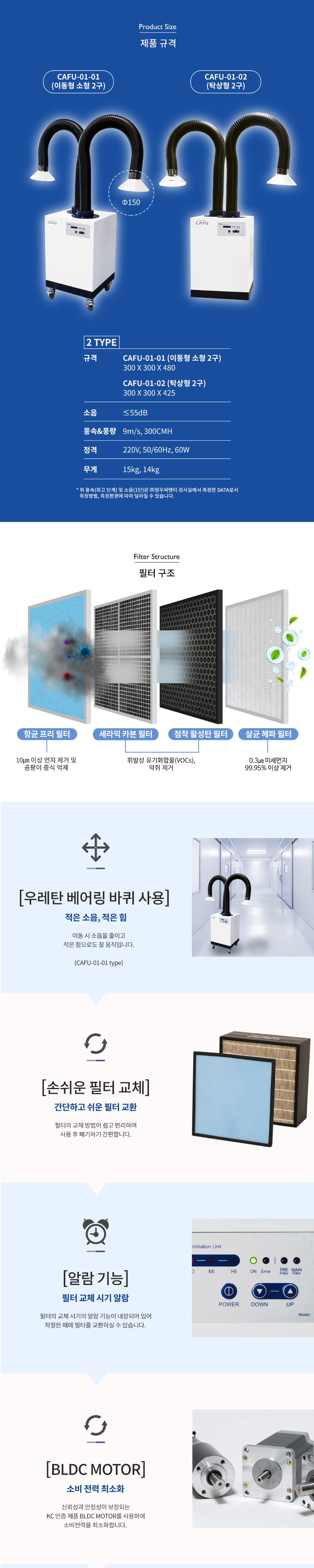 2구 탁상형, 이동형 유해가스 정화기 CAFU-A01-01, CAFU-A01-02