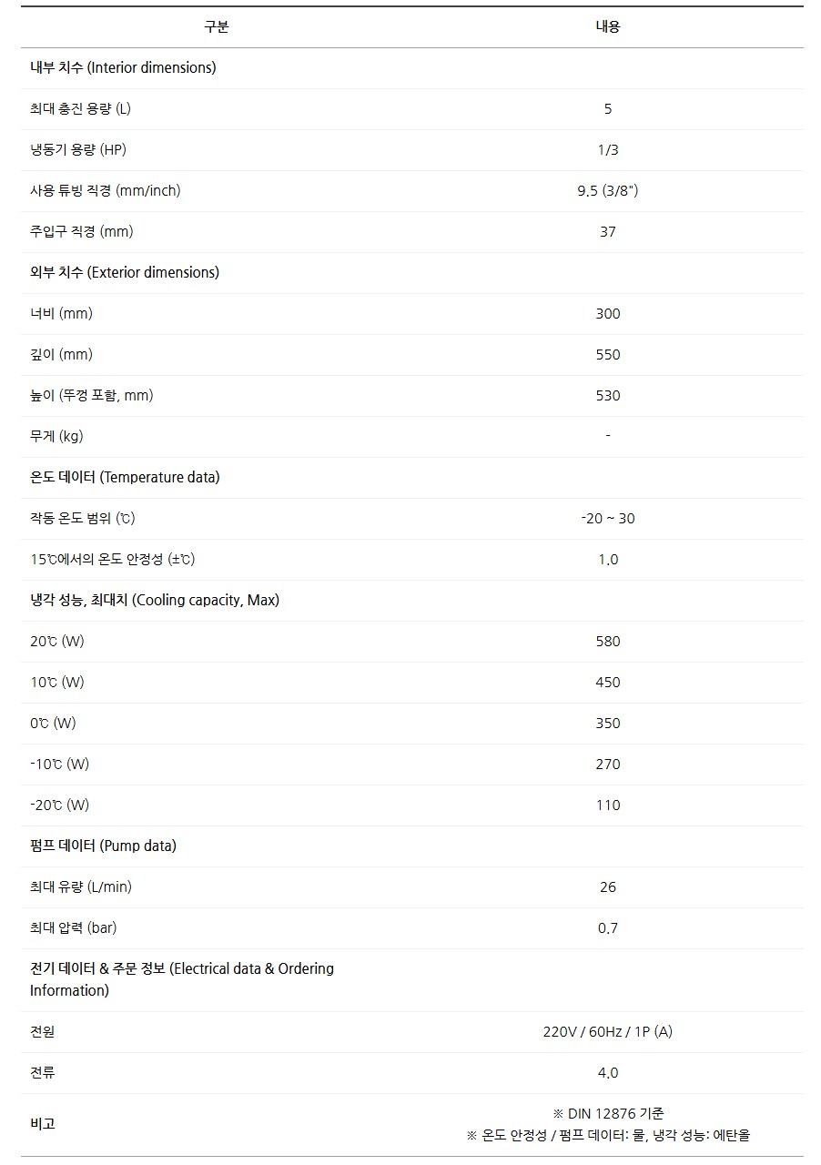 RC-05 모델은 -20℃에서 +30℃까지 정밀하게 온도 제어가 가능한 냉각수 공급장치입니다.