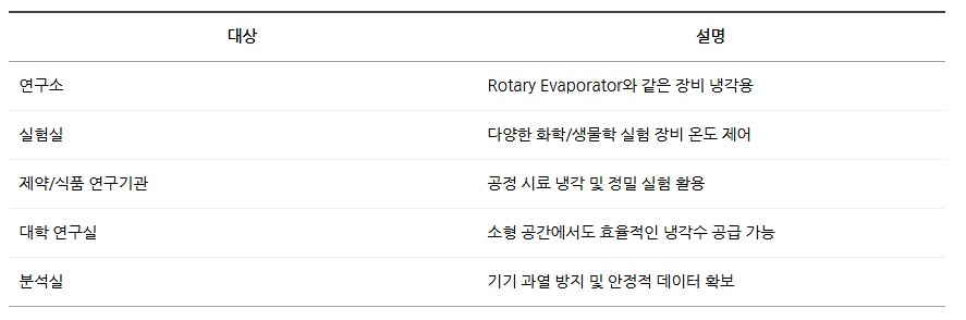 소형 Slim & Compact 디자인으로 설치 공간 효율성이 뛰어나며, Rotary Evaporator 등 다양한 실험 장비와 함께 사용하기 적합합니다.