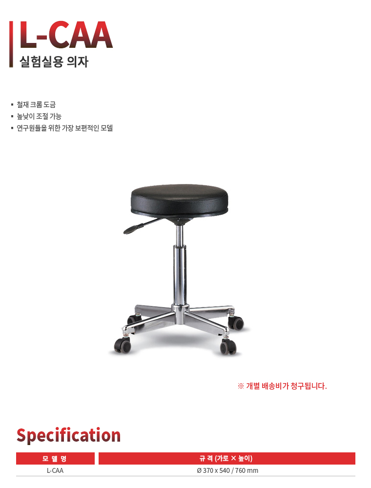실험실용 연구실용 병원 진찰용 의자 높낮이 조절 가능 Ø370×540/760mm L-CAA