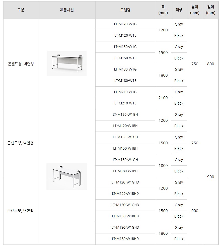 벽면형 철재 실험대 콘센트 포함 워크테이블 고중량 하중 LT-M 시리즈
