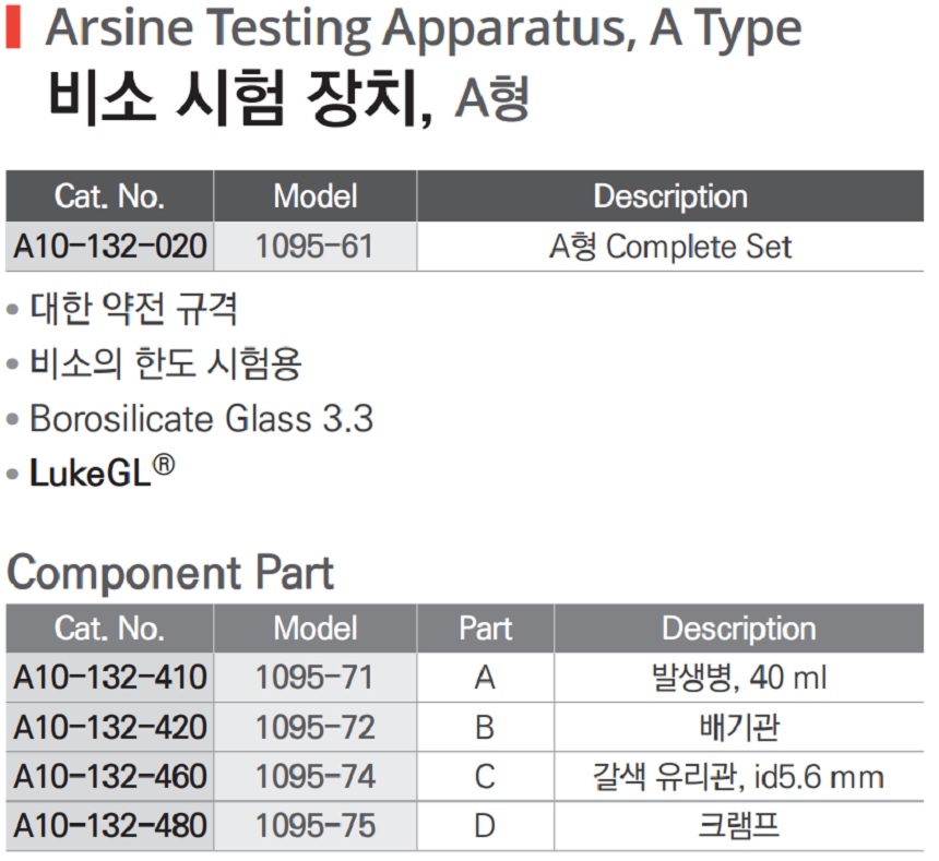 비소 시험 장치, A형 Arsine Testing Apparatus, A Type, A10-132-020