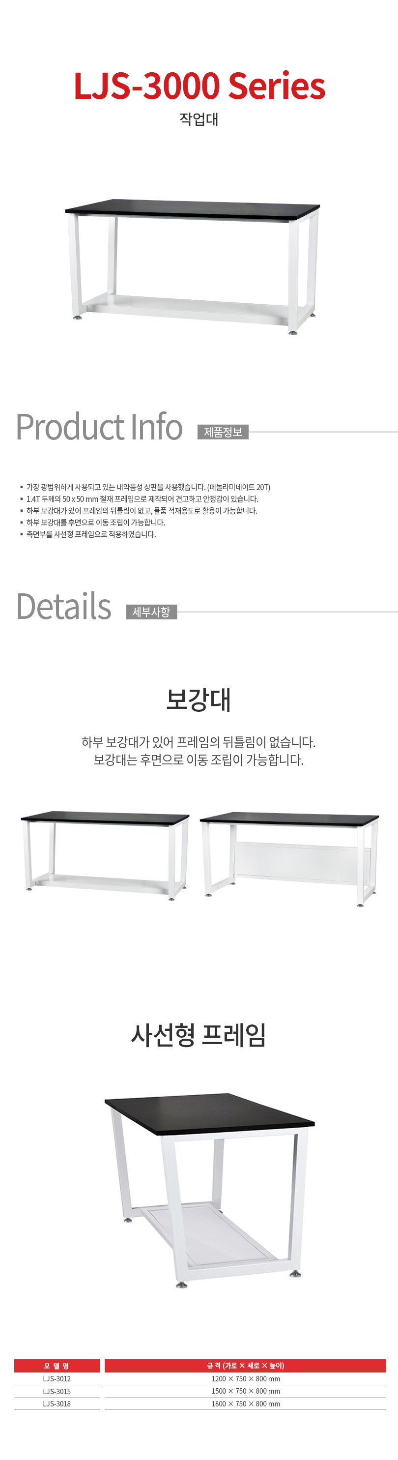 철재 재질 측면 사선형 프레임 작업대 LJS-3012