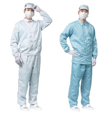 크린룸 또는 일반 작업라인에서 착용하는 상/하의 분리형 작업복으로 착용감 및 활동성이 편리합니다.