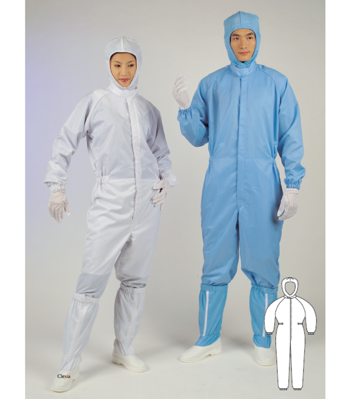 원피스는 상하일체형으로 제작하여 Particle 배출을 효과적으로 차단하고, 정전기 발생을 최소화시키는 작업복입니다. SF형(Center Zipper) 은 Class 1,000 이상의 환경에서 가장 보편적으로 공급되어 있으며 사용 환경에 2up 1down 이나 3up 2down의 제직방식으로 만든 원단이 두루 적용되고 있습니다.