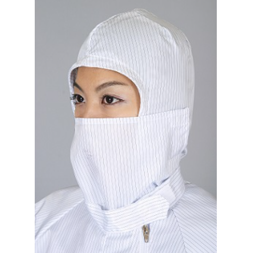 크린룸에서 원피스 방진복 착용시 머리와 목 부분에서 발생하는 파티클 억제 및 얼굴 부분에서 발생하는 이물질이나 피티클을 한번 더 잡아주는 마스크형 후드