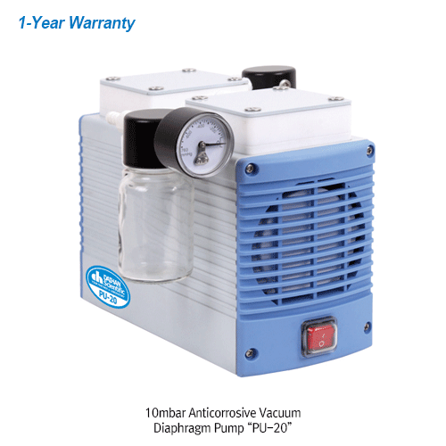 DAIHAN® 10mbar Anticorrosive Vacuum Diaphragm Pump “PU-20” , with Fine Regulator and Moisture Trap, 18Lit/minWith Built-in Thermal Protection, Quit and Low Vibration, 내부식성 저소음/저진동 진공 다이어프램 펌프