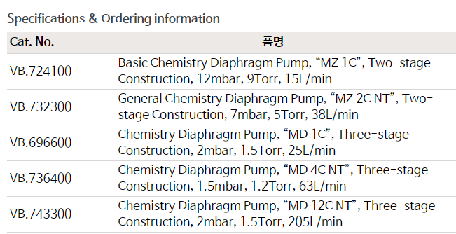 품명 ■ 농축기용 진공 펌프 Chemistry Diaphragm Vacuum Pump