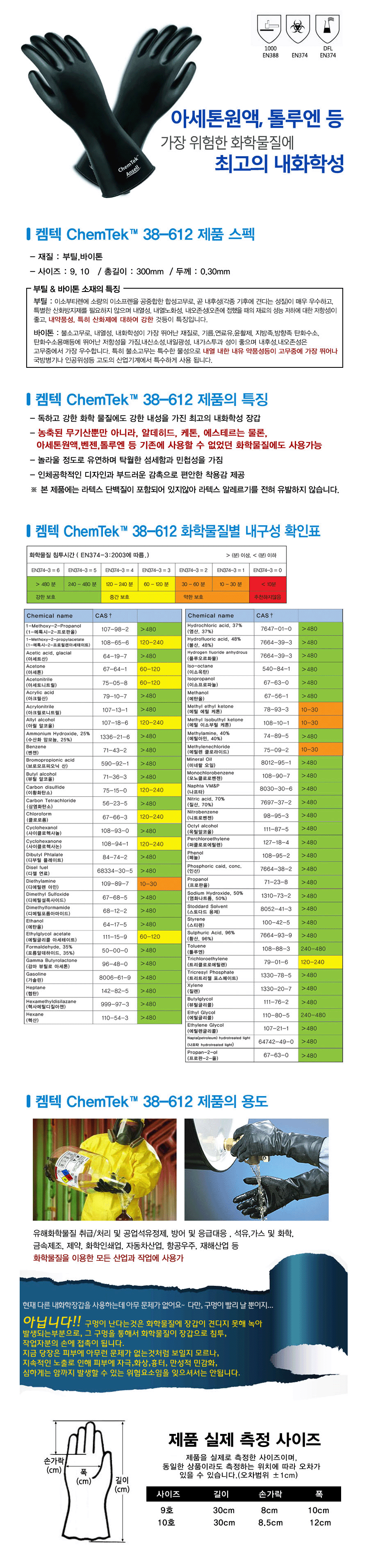 품명 기존에 사용할 수 없었던 화학물질에도 사용이 가능한 극강의 내화학장갑