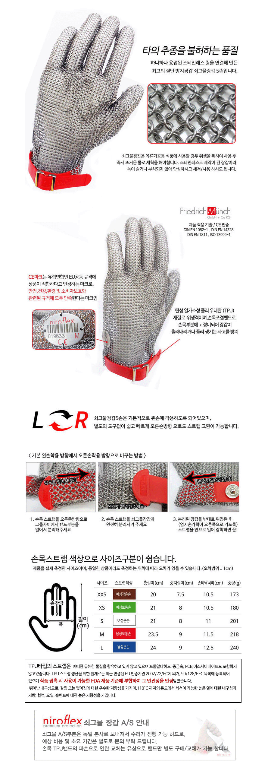 품명 용접된 스테인레스 링을 연결한 절단방지 쇠그물장갑