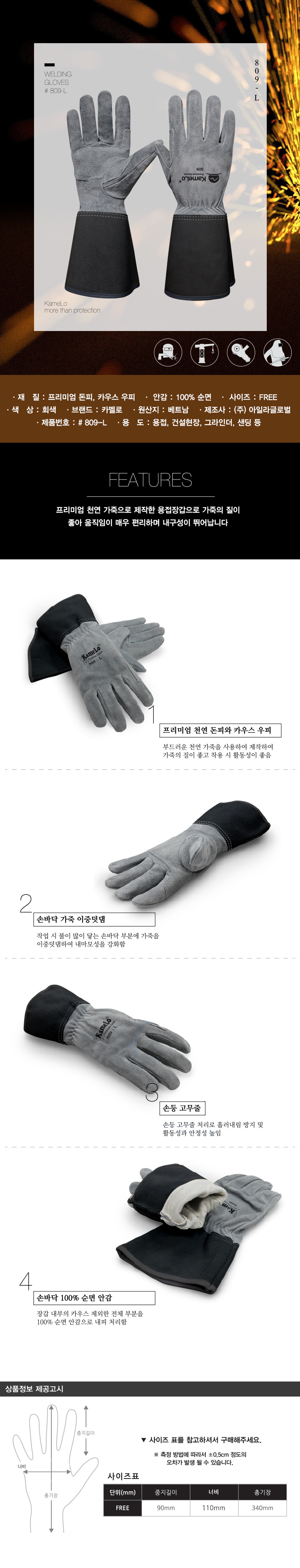 돈피, 우피+면안감, 34cm 알곤용접장갑