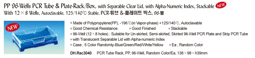 PP 96-Wells PCR Tube & Plate-Rack/Box, with Separable Clear Lid, with Alpha-Numeric Index, StackableWith 12×8 Wells, Autoclavable, 125/140℃ Stable, PCR- 튜브 &- 플레이트 박스, 96- 웰