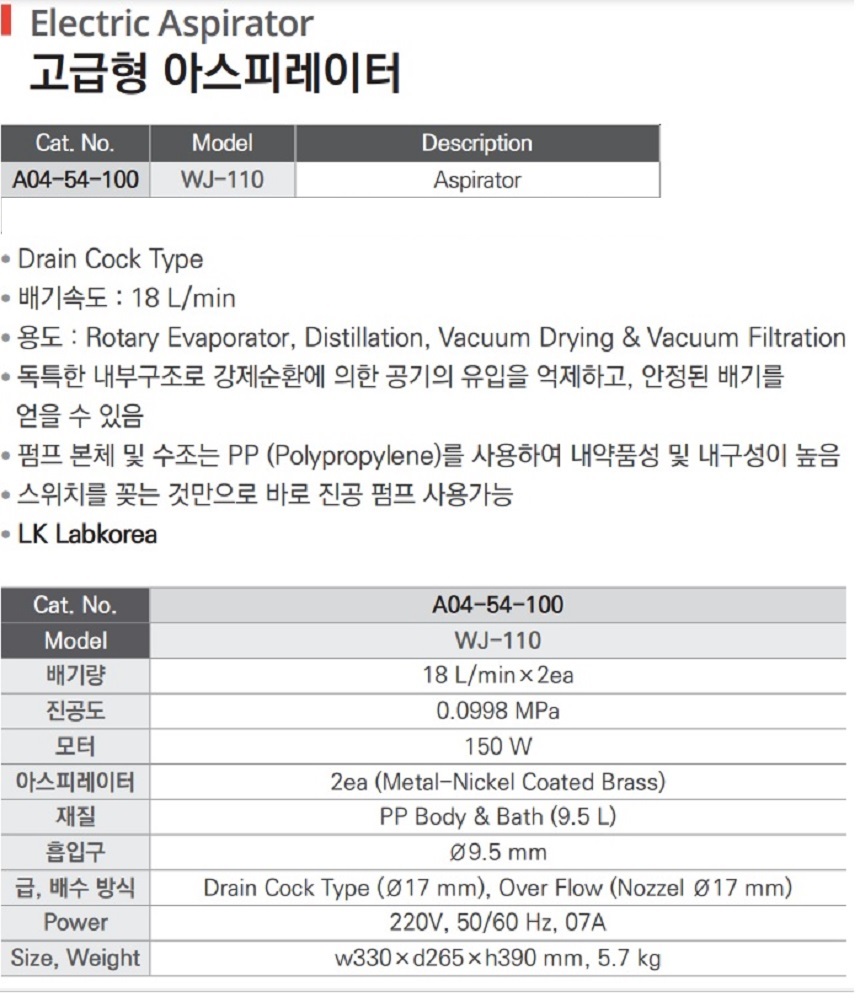 | 아스피레이터 | 2ea (Metal-Nickel Coated Brass) |