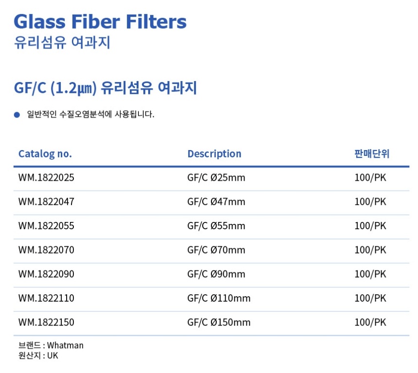 Whatman GF/C 유리섬유 여과지 Glass Fiber Filters